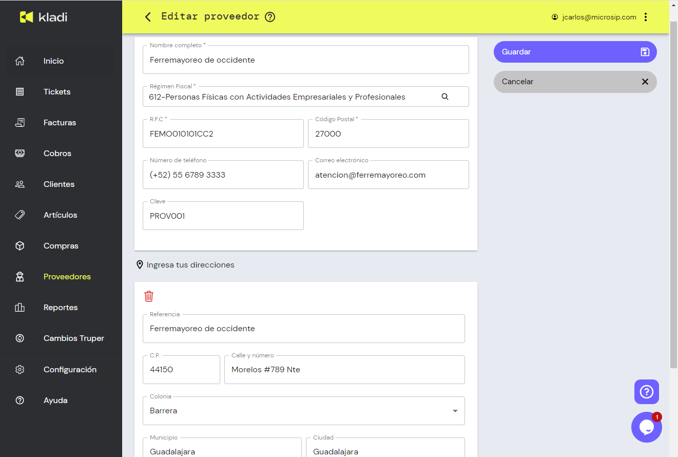 Puedes modificar los datos de un proveedor en cualquier momento.