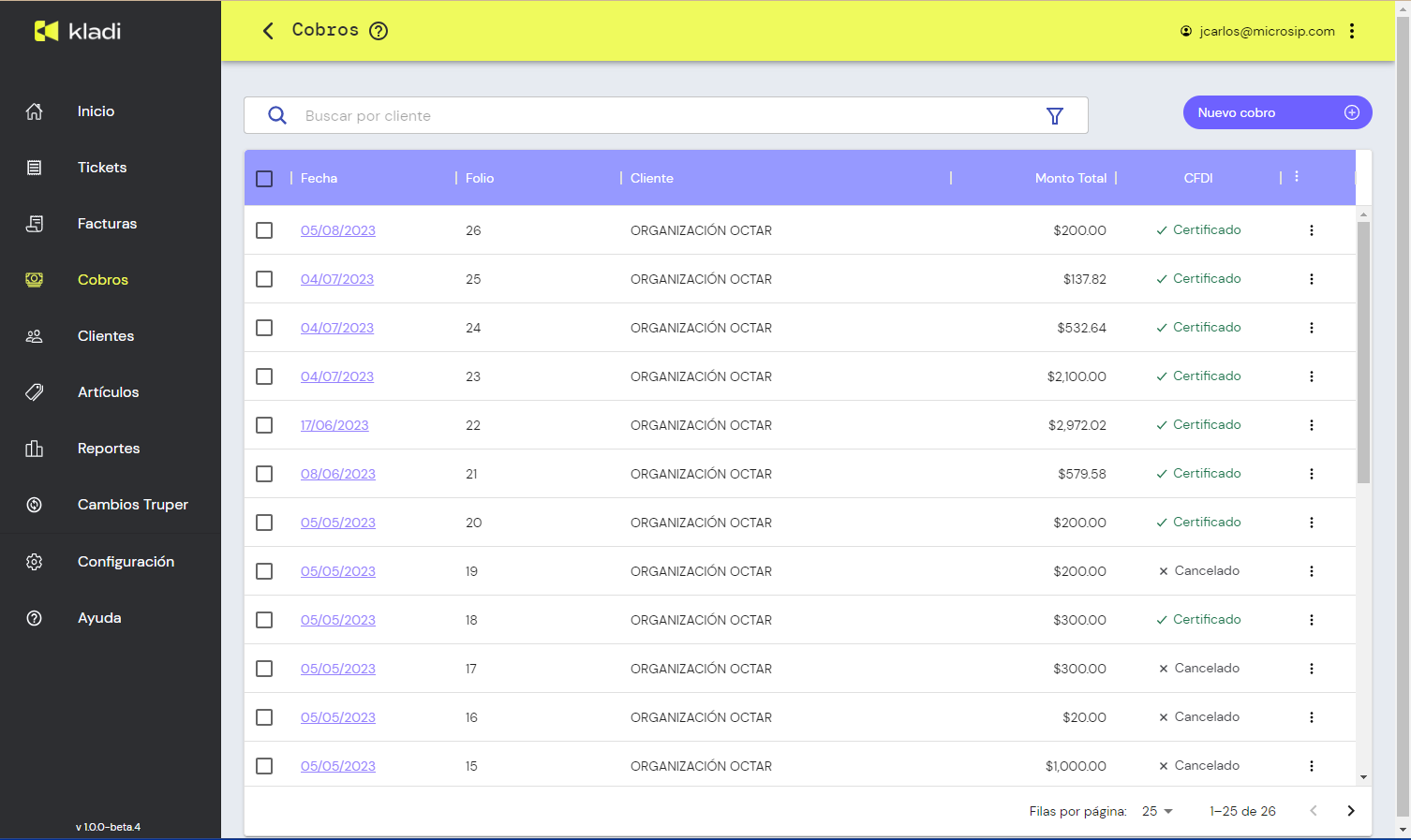 El listado de cobros te permite ver una lista de los cobros que has registrado.