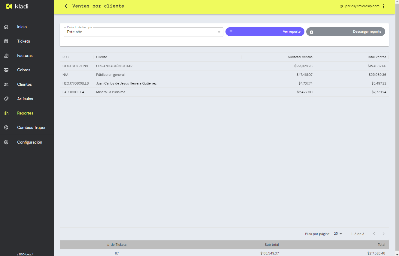 El reporte de ventas por cliente te permite conocer las ventas en un periodo de tiempo desglosadas por cliente.